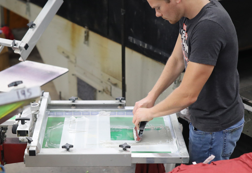 You guessed it - screen printing uses screens to print. We magically duplicate a design on one or multiple coated screens (depending on the number of colors in the design). Then, using the screen as a template, we apply special inks to transfer the design to almost anything. The medium that is used to hold the design will, at times, dictate which ink is used.